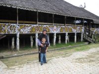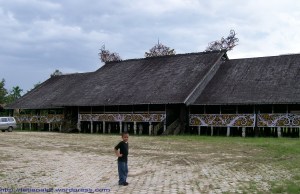 Abner di depan Rumah Panjang, rumah tradisionil suku Dayak Kenyah yang menetap di Desa Pampang. Di rumah ini biasanya setiap hari minggu siang diadakan pertunjukan tari-tarian Dayak, juga dijual hasil kerajinan tangan masyarakat Dayak yang menetap di Pampang.