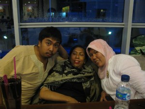 Tadi malam ini, begitu ketemu saat kak Lintje dengan bang Parlin dan bang Nanda menjemput Tati di bandara Sultan Syarif Kasim II Pekanbaru, Tati langsung menyalamin dan mencium pipi beliau… Kita lalu pergi makan malam di Mall Seraya…
