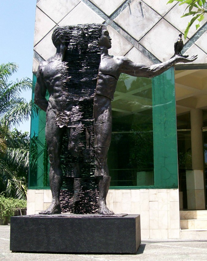 Di sebuah teras di lingkungan Sculpture Park, Tati melihat sebuah patung yang diberi nama Dua Wajah… Wujudnya seperti sesosok tubuh yang terpisah dua… Yang satu menjadi sosok yang membawa kedamaian dengan seekor burung merpati di tangan.. Yang satunya lagi menjadi sosok yang dari depan terlihat mengikut arah pandang sosok yang damai, tapi sebenarnya dia memegang pisau yang disembunyikan di bagian belakang tubuhnya…