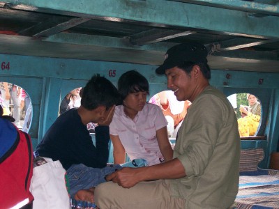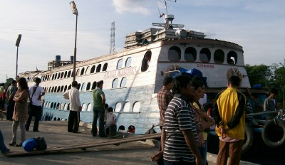 Ternyata kak Vivi sekeluarga tuh ke Selat Panjang naik kapal Jelatik. Kapal yang umurnya entah berapa puluh tahun…. Tati kaget juga ngeliatnya… Tati terkahir naik kapal di perairan Sungai Siak ini pertengahan tahun 1980.. 28 tahun yang lalu… Dan waktu itu kapalnya ya yang begini ini..Penumpang duduknya di bangsal yang tersedia dua tingkat di setiap sisi bagian dalam kapal.. Cuma kalo kapal yang dulu Tati tumpangin ukurannya sedikit lebih kecil.. Ternyata masih seperti ini toh kapalnya…! Dalam pikiran Tati tuh kapalnya kayak ferry jalur Batam – Singapore gitu lho…!!!