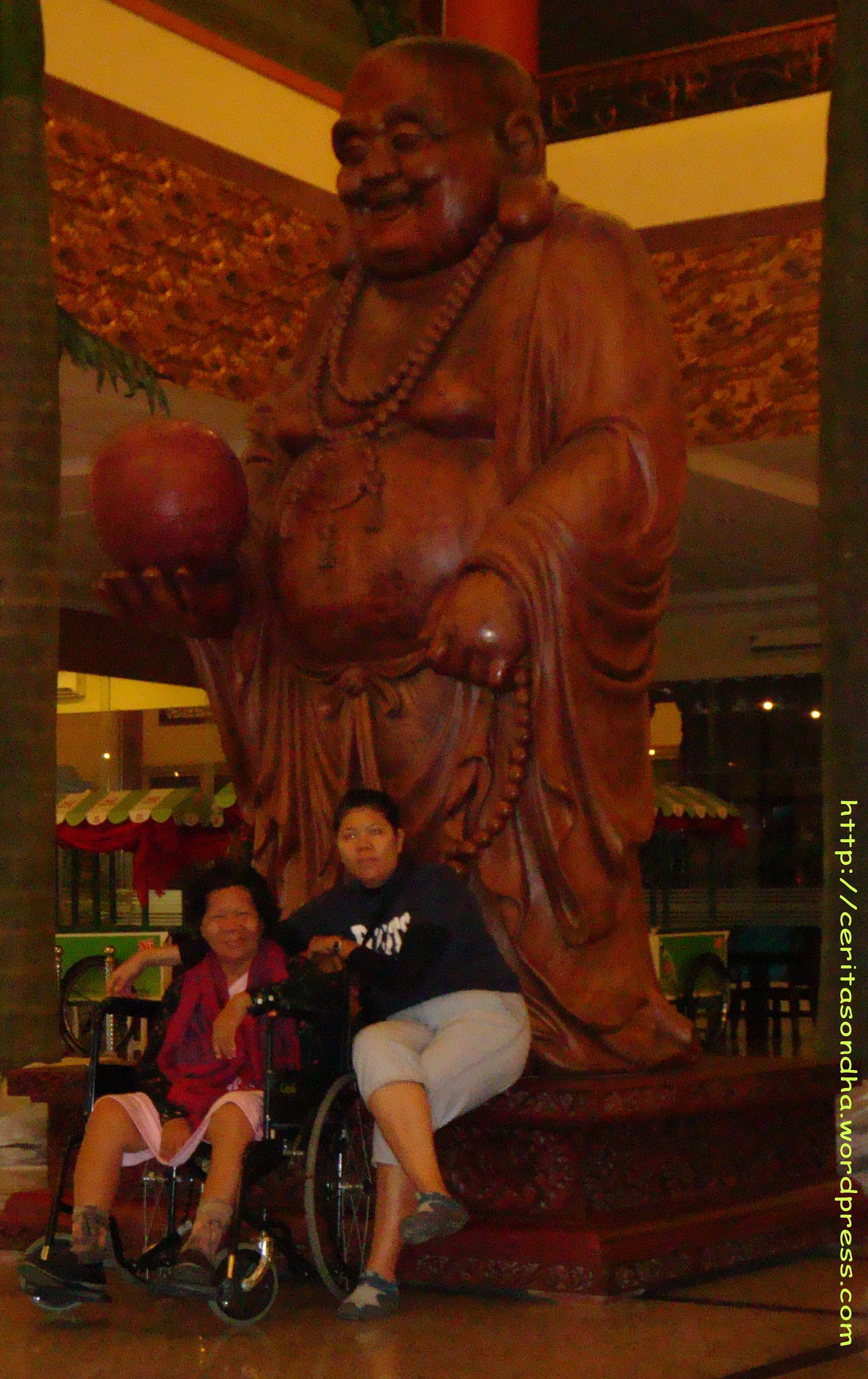 Ananda, Nora (my youngest sist) & Mama di Depan Vihara Maitreya, Medan