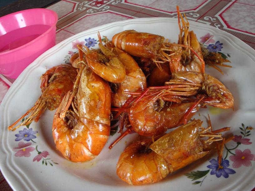 Soal harga relatif lah yaa… Beberapa minggu yang lalu, sepiring besar udang sungai goreng dibandroll Rp.100.00,-. Ikan dan ayam kalo gak salah ingat dikasi harga Rp.10.000,-/potong. Ikan pantau atau ikan2 kecil2 lainnya dibandroll Rp.50.000,-/piring. Jadi kalau makan berempat, paling enggak sediaiin duit sekitar Rp.250.000-an laaahh…