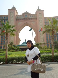Setelah sarapan, kami menuju bis.. Acaranya…: city tour…!!! Perjalanan pertama, kami menuju Palm Jumaeraah… Sebuah pulau hasil reklamasi d tepi Arabian Gulf yang berbentuk pohon palem.. Di bagian puncak, terdapat Atlantis Hotel yang terkenal itu… Sementara di bagian yang merupakan “pelepah” terdapat residences.. Sedangkan di antara pelepah, terdapat laut… Bahkan dibeberapa ruas yang menghubungkan bagian2 dari pohon palem itu merupakan terowongan yang berada di bawah permukaan laut.. Keren bangetsss….. Apa yang bisa dilihat di Atlantis Hotel…? Ada aquarium, Aladin’s cave, swimming pool yang berbentuk lagoon.. Tapi karena hanya dikasi waktu 45 menit, ya hanya sempat muter sana sini…