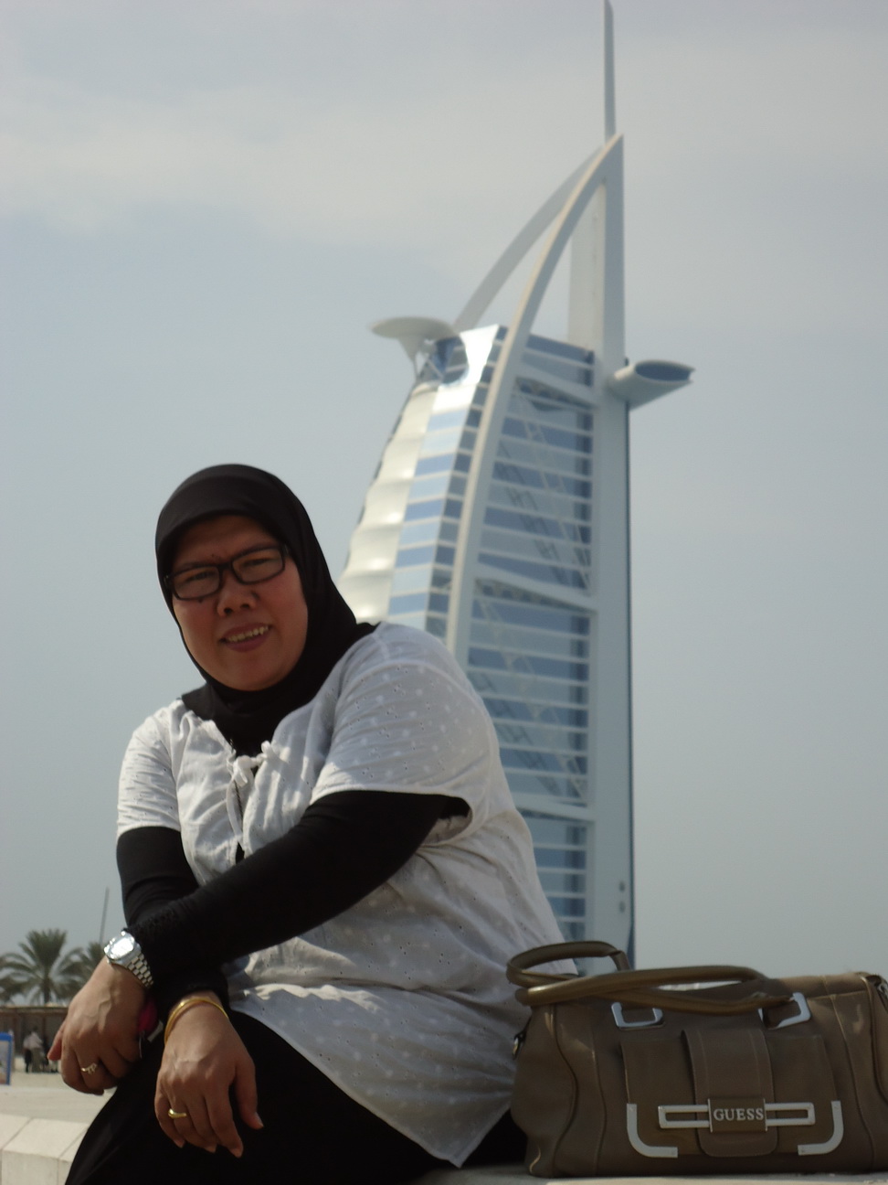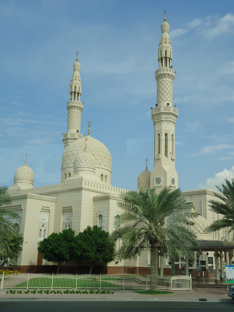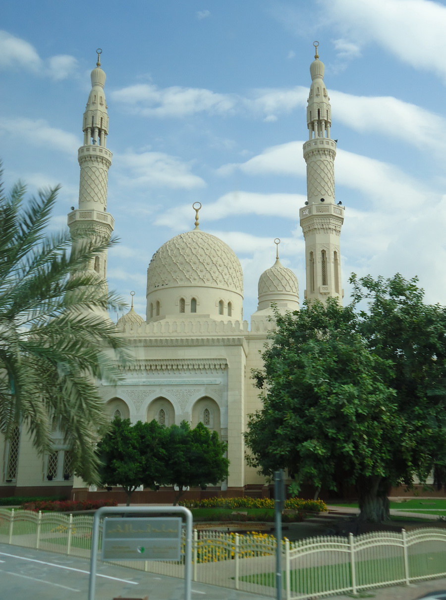 Dari Palm Jumaeraah, kami dibawa menuju Burj Al Arab.. Sebuah bangunan di tepi pantai Arabian Gulf yang menjadi icon kota Dubai.. Bangunan ini berbentuk layar… Di bagian atasnya ada helipad dan restaurant berbentuk rectangle dimana para pengunjung bias bersantap sambil menikmati laut… Sementara di pantai di sekitar Burj Al Arab banyak sekali tourist yang bejemur dengan swimsuite beraneka warna dan model…. Dari Burj Al Arab, kami dibawa menyusuri jalan yang sejajar dengan garis pantai.. Jalan yang di kiri kanannya terdapat rumah-rumah mewah, termasuk rumah salah satu putra sheikh yang menikah dengan putrid Raja Jordan… Kami lalu menuju kawasan yang dulunya merupakan pusat kota Dubai sebelum jejeran skyscrapers mengisi kawasan Bur Dubai… Kami juga sempat melewati Jumaerah, sebuah masjid yang merupakan salah satu landmark Dubai.. Masjid yang indah.. Sayang karena merasa lelah dan lapar, sebagian besar peserta tour tidak ingin singgah dan melihat masjid tersebut.. Tapi sungguh masjid itu dari luar pun terlihat sangat indah.. Tidak masuk ke masjid ini merupakan salah satu yang aku sesali dari perjalanan ini.. Semoga ada kali yang lain…, dan semoga kalau ada kesempatan tour kemana pun lagi, aku tidak kehilangan kesempatan melihat rumah Alloh lagi…