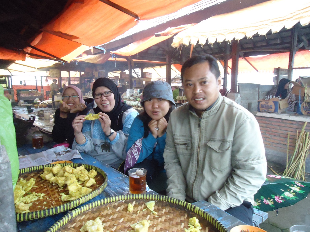 Setelah melihat cairan yang bergolak di bukaan2 yang ada di tanah tersebut dari balik kekabutan, kami kembali ke parkiran mobil… Di sekitar parkiran itu tersedia beberapa bangunan yang difungsikan sebagai pasar lengkap dengan toilet yang cukup bersih… Sebelum pulang kami menghampiri sebuah warung di pojokan pasar tersebut.., waung yang menjual goreng tempe, tahu, pisang serta lengkap dengan minuman berupah teh, kopi dan purwaceng, sejenis minuman khas dieng yang terbuat dari rempah2.. Dalam cuaca yang dingin…, tempe dan tahu goreng yg dicocol sambel kecap rasanya nikmatttttt bangetttzzzzzz……