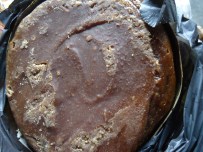 Gula bargot dicetak dengan menggunakan daun bargot yang dbentuk lingkaran lalu diletakkan di permukaan yang rata...