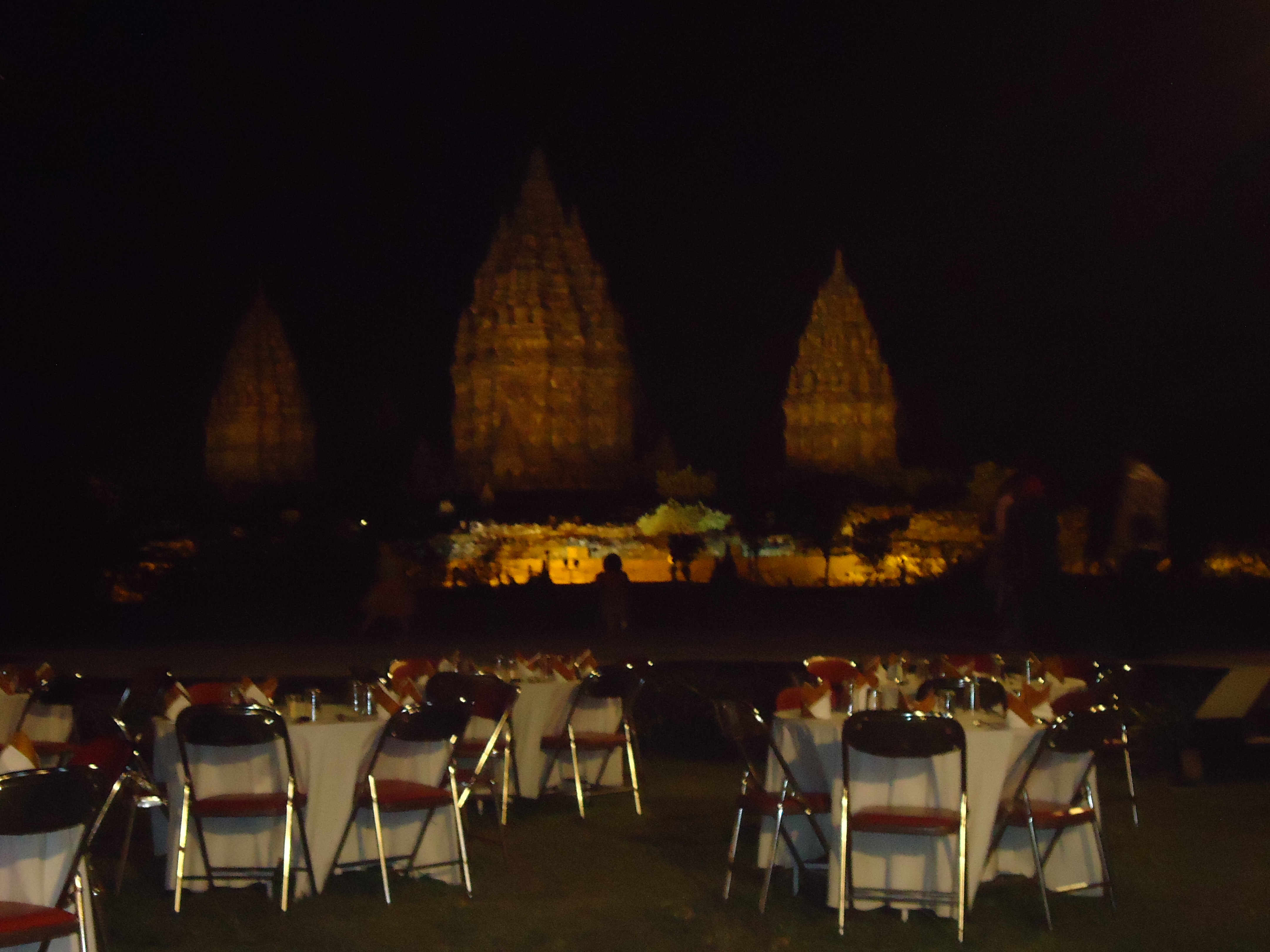 Mba Wik langsung mengajak aku dan staff beliau ke restoran yang berada di utara gedung Trimurti… Restoran tersebut terdiri dari beberapa bale…, dengan beberapa set meja makan tersusun cantik di halamannya menghadap “Kompleks Candi Prambanan”.. Sungguh makan malam yang istimewa, suasananya… Makanannya enak, tapi gak luar biasa… Standard, kalo menurut aku… Menunya campuran… ada masakan Eropa, Chinesse ada pula Gudeg… 😀