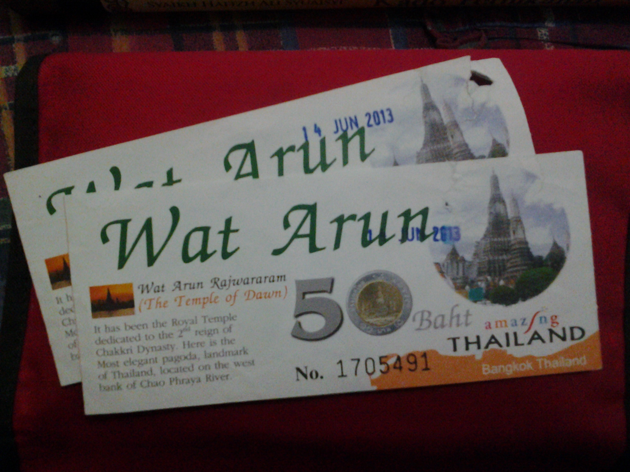 Tanggal 14 Juni pagi, setelah sarapan kami memutuskan untuk mulai menikmati Kota Bangkok.. Kemana..? Bagian tua Kota Bangkok.. Ke salah satu candi Budha yang mulai dibangun di awal abad ke 17, di sisi barat sungai Chao Phraya yang membelah Kota Bangkok.., WAT ARUN alias Temple of the Dawn alias Candi Fajar Hari.. Nama candi ini diambil dari nama Dewa Fajar India, Aruna.