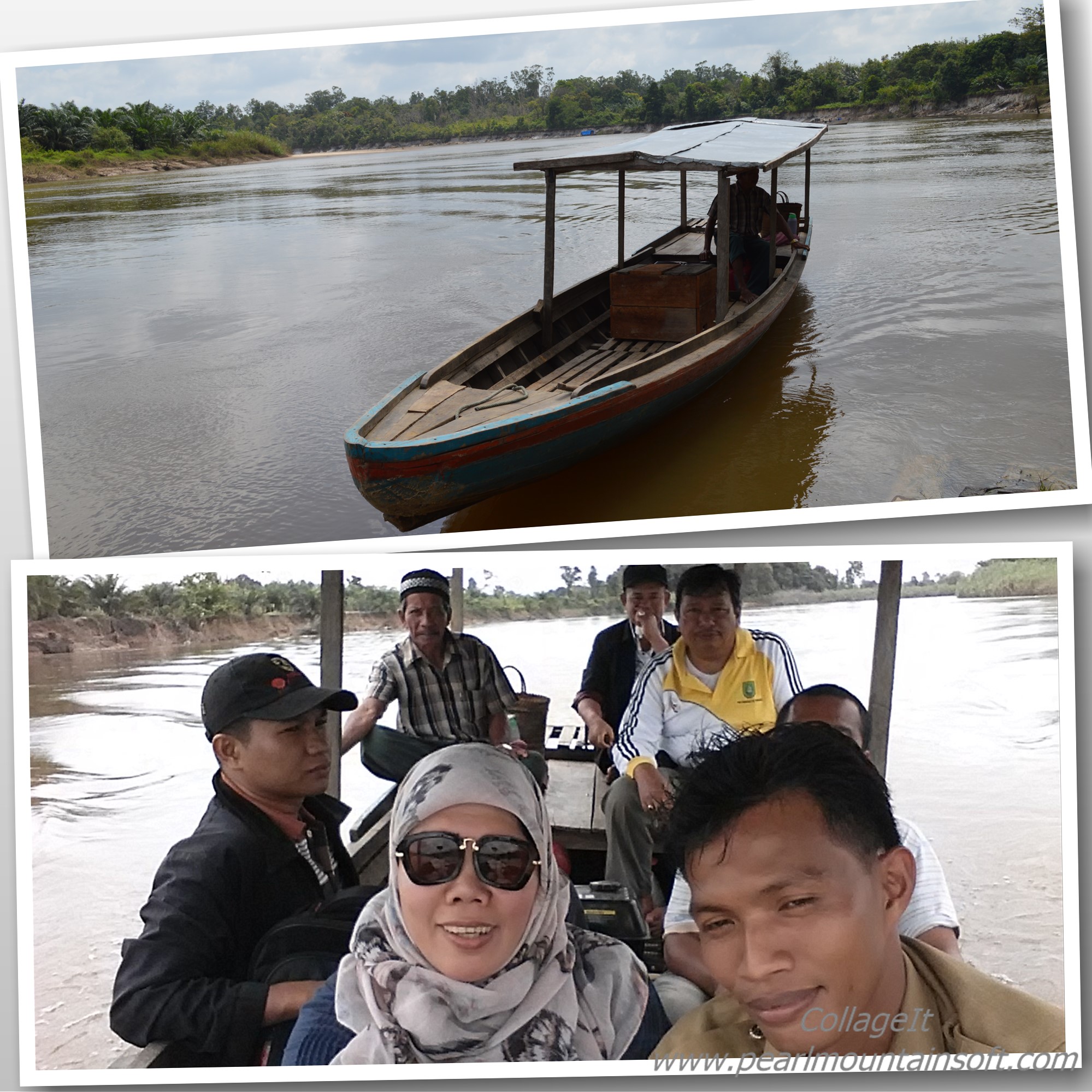Rencananya kami akan menumpang boat milik Pemda, yang akan mengantar beras raskin.. Tapi apa daya, karena mesinnya ngadat, jadi kami harus pergi naik perahu pompong.. Perahu kayu, yang menggunakan tenaga diesel yang berbunyi pom pom pom pom…, sehingga disebut perahu pompong… Berapa jam…? Berangkat karena meghilir, mengikuti arus sungai ke arah hilir, butuh waktu 3 jam… Karena kami sempat menunggu upaya memperbaiki mesin boat…, kami akhirnya baru berangkat sekitar jam 11 siang…