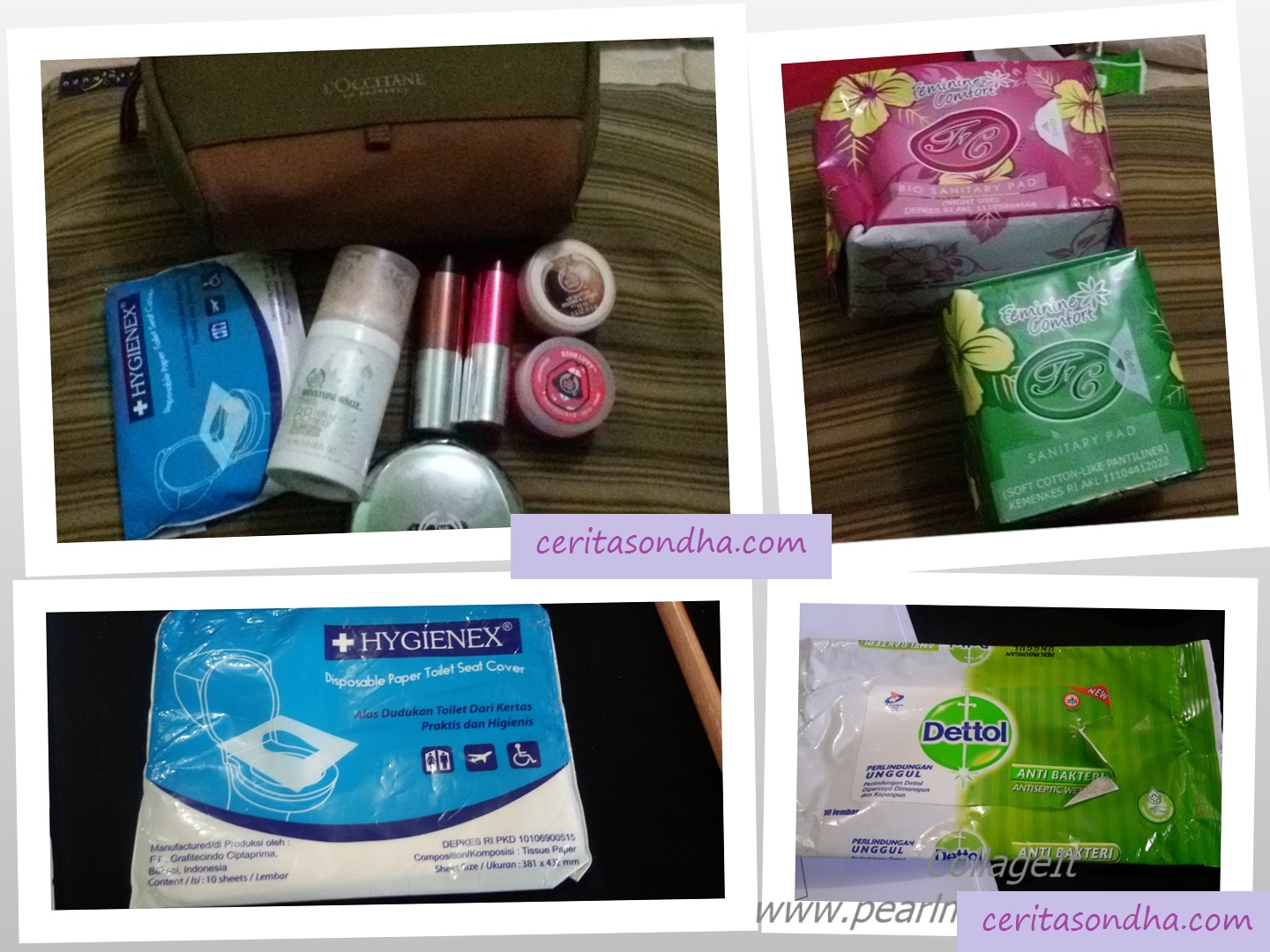 1. Panty liners.. Upppssss…. Ya.. Karena ingin bisa tetap nyaman dan bersih, sehingga tak ragu dengan kebersihan pakaian, meski dalam perjalanan, panty liners menjadi kebutuhan pokok buat diriku. Wajib ada. Tidak hanya saat melakukan perjalanan, setiap hari panty liners ada di dalam tasku.. Ketika menjelang dan selama “tamu” datang, maka panty liners tidak sendiri di dalam tas, ada temannya yang berkuran lebih besar dan tebal, menemani..