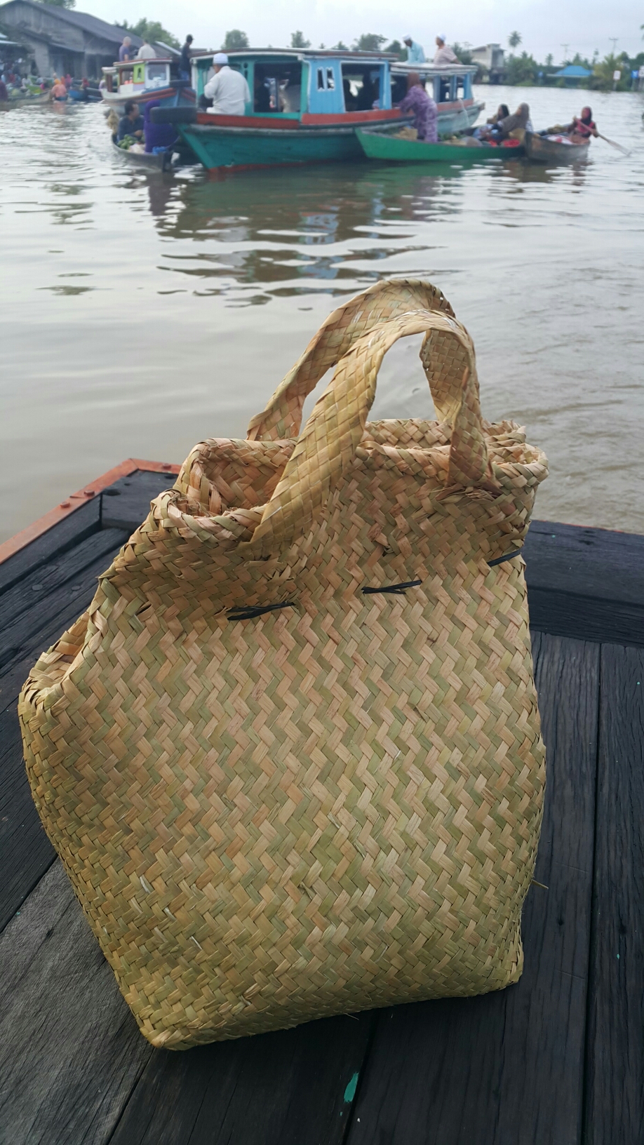 Oh ya, bagi pengunjung yang berbelanja cukup banyak dan butuh wadah buat bawa belanjaan pulang, para pedagang berperahu menyediakan keranjang anyaman yang dihargai Rp.5.000,- per buah untuk ukuran kecil dan Rp.10.000,- per buah untuk ukuran besar. Kalau di Tapanuli keranjang seperti yang dijual di Pasar terapung Lok Baintan ini disebut hadangan. Biasanya dipakai buat bawa beras ke acara-acara adat, seperti acara duka cita dan pesta pernikahan.