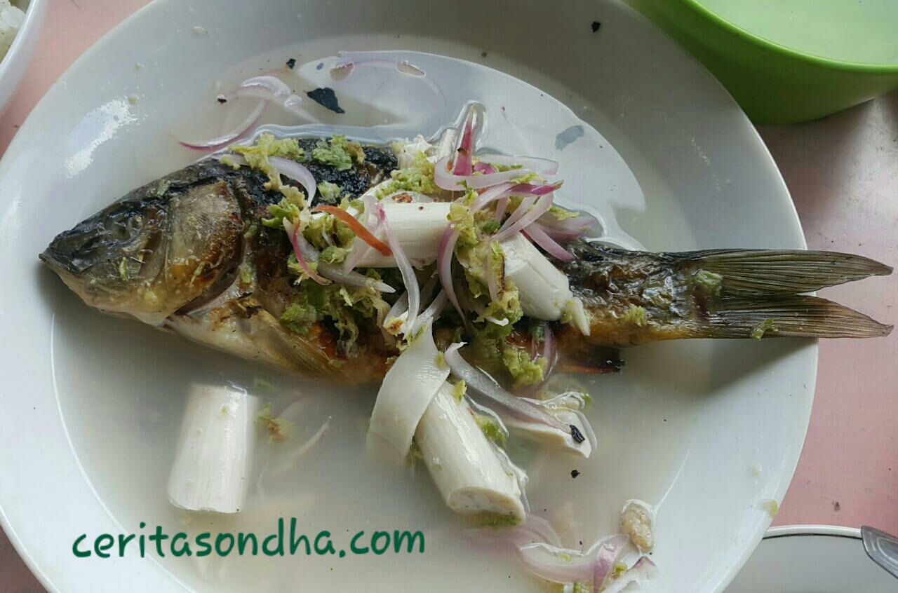 Gimana soal harga? Harga makanan di tempat ini lebih juara lagi ! Saat hari Kamis malam kami makan berlima, dengan menu Ikan Mera dan Ikan Lele, tagihannya hanya Rp.88.000,-. Saat makan hari Jum’at siang, yang makan 3 orang dengan menu masing-masing ikan dan telur dadar plus juice untuk 4 orang, tagihannya Rp.105.000,-. Murah yaaa…